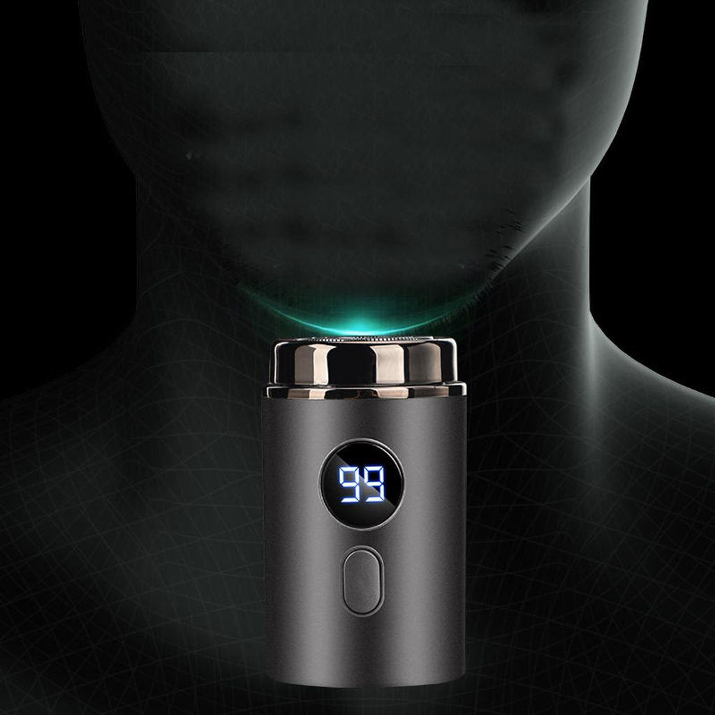 Mini electric shaver for men, portable for travel or use in a car. Rechargeable and fully washable.